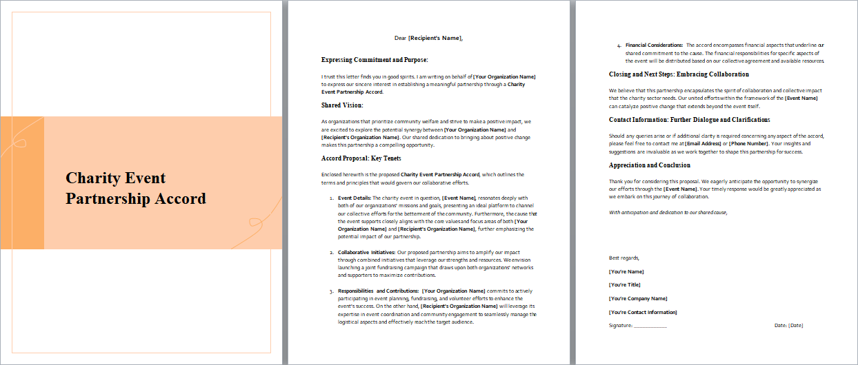- Sign and Execute: Once all parties are in agreement, sign the accord, and begin the collaborative journey towards a successful charity event.
