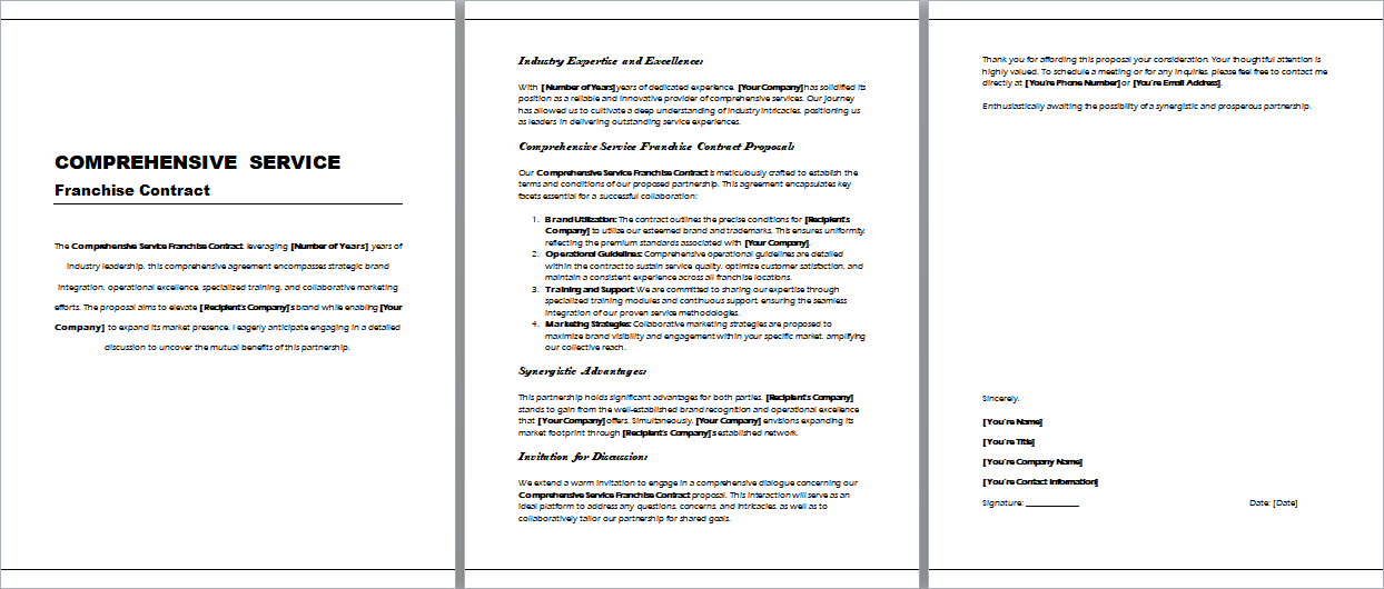 - Access: Dive into the Comprehensive Service Franchise Contract to embark on your journey towards providing outstanding comprehensive services.