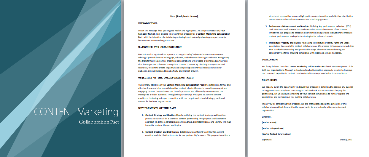 - Unified Vision: The Content Marketing Collaboration Pact ensures that all parties are aligned with the vision, strategies, and expectations of the content marketing partnership.