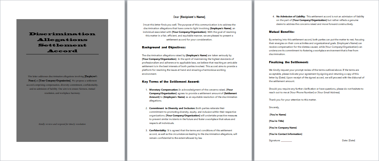 Welcome to the Discrimination Allegations Settlement Accord – Your Path to Equality, Respect, and Resolution.