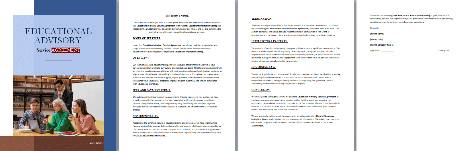 - Payment Terms: Think of this as the cost of your educational support. It explains how you'll pay for the advisory services, like a flat fee, hourly rate, or something else.