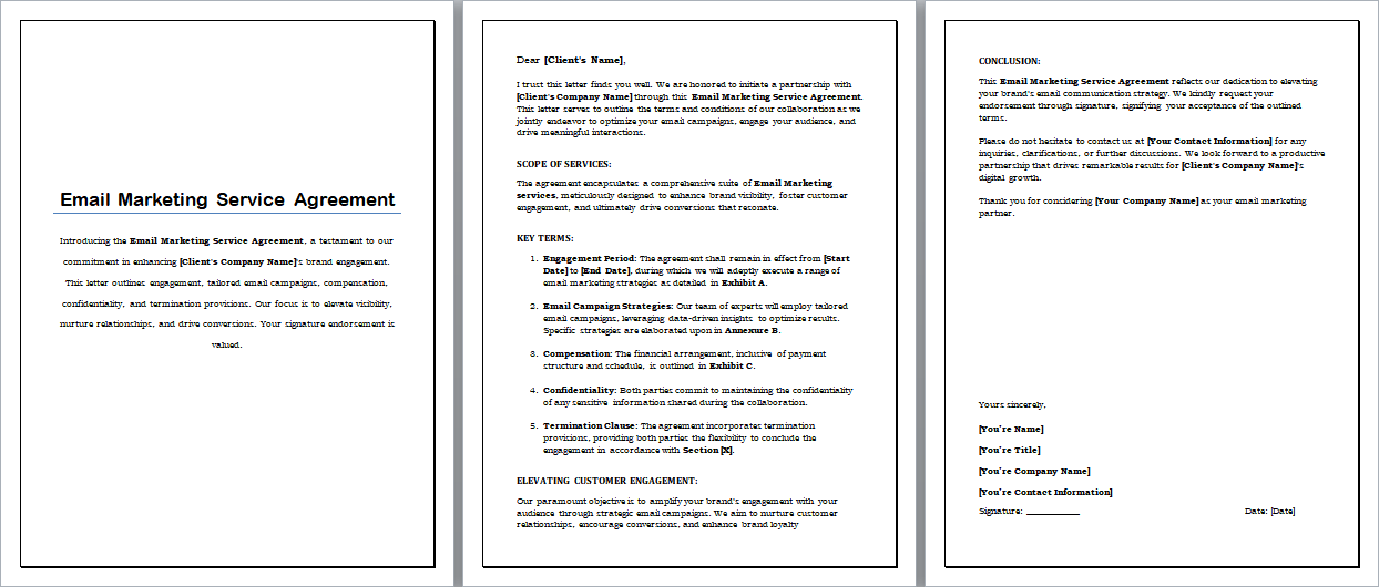 - Campaign Strategies: Inside this agreement, we map out our plans for email campaigns. It's like our shared playbook for making email magic happen.