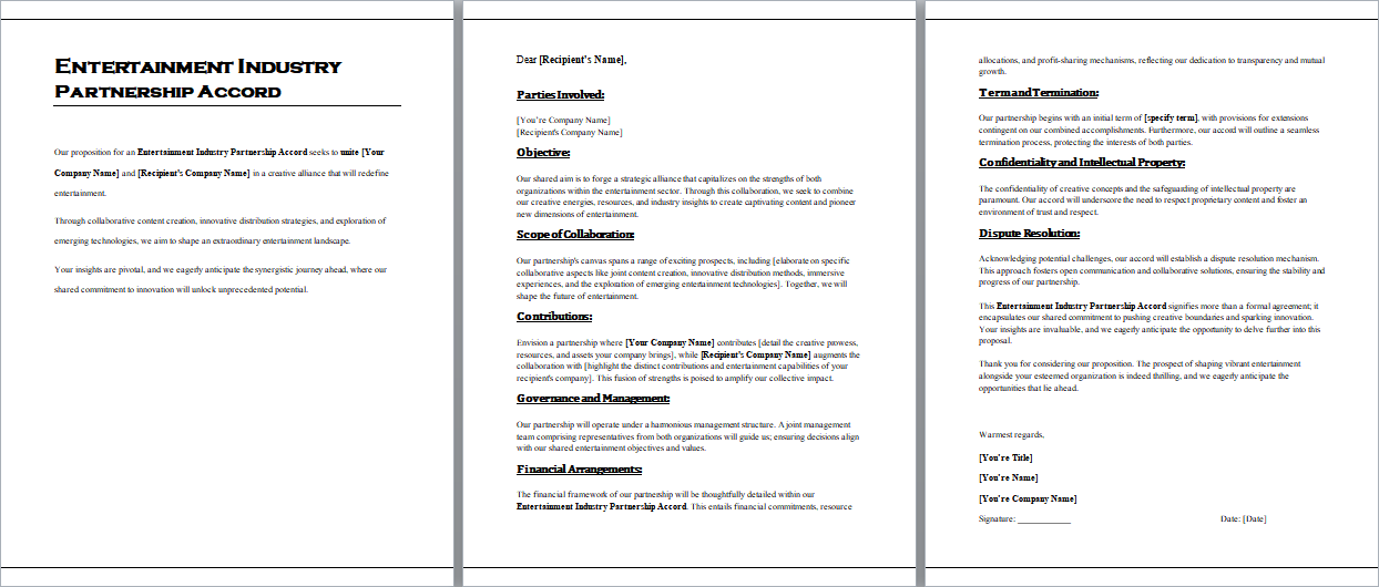 Imagine this accord as your script for a blockbuster movie – entertainment partners coming together to make magic happen. It guides your partnership through the twists and turns of the entertainment world.