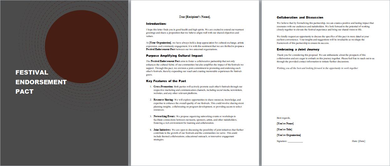 4. Work Together: Once you have the pact, work closely with festival organizers, artists, and sponsors. Together, you can make the festival unforgettable for everyone.