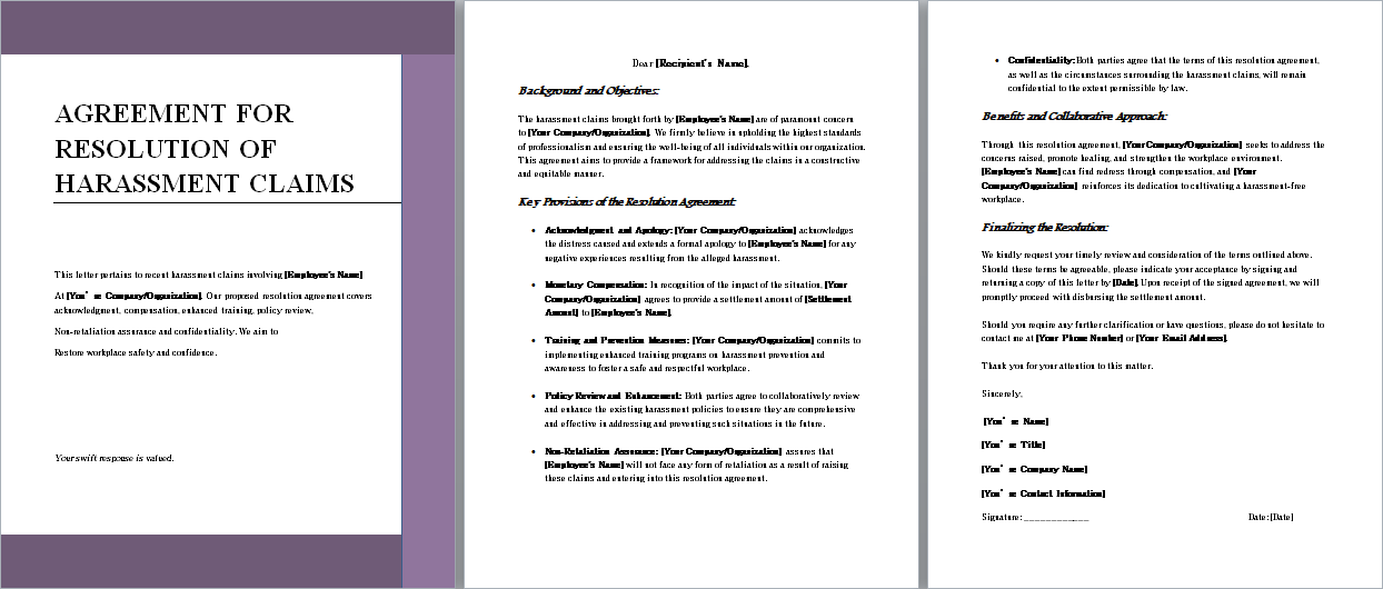 - Access: Dive into the Harassment Claims Resolution Agreement to embark on your journey of cultivating a workplace free from harassment.