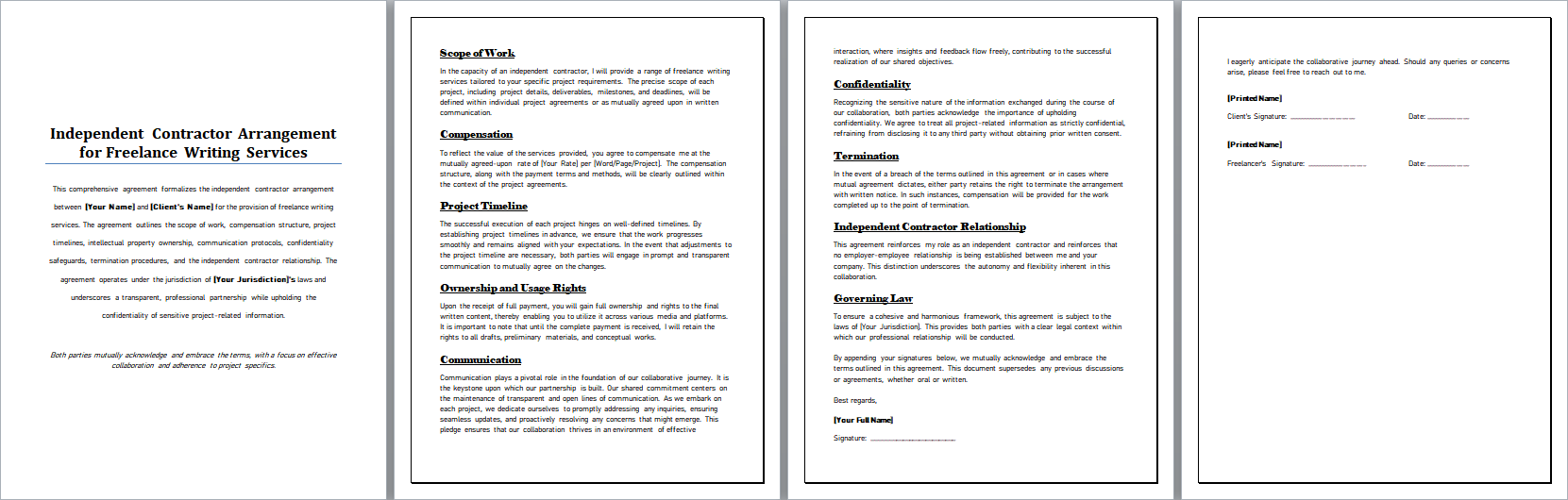1. Download: Access the Independent Contractor Arrangement for Freelance Writing to ignite your writing partnerships.