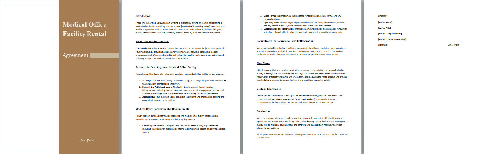 So, let's start our Medical Office Facility Rental Agreement journey together. It's how we ensure a successful partnership where you provide top-notch healthcare, and our facility is a place of healing and well-being.