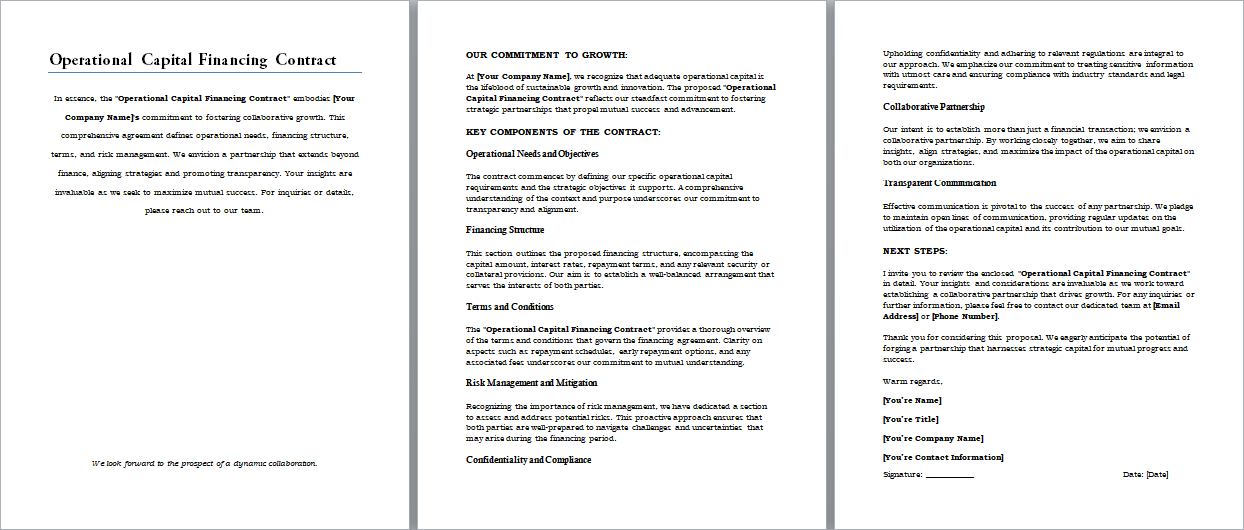 - Getting Started: Dive into the details of the Operational Capital Financing Contract, taking the first step toward a smoothly running and growing business.