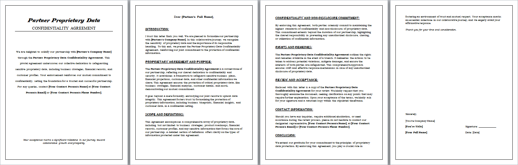 Welcome to the Partner Proprietary Data Confidentiality Agreement—an essential tool for safeguarding sensitive information and fostering trust in collaborative ventures.