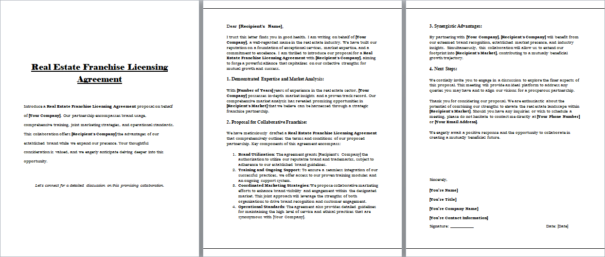 - Access: Dive into the Real Estate Franchise Licensing Agreement to embark on your journey of exploring property ventures.