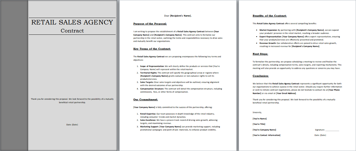 Welcome to the Retail Sales Agency Contract