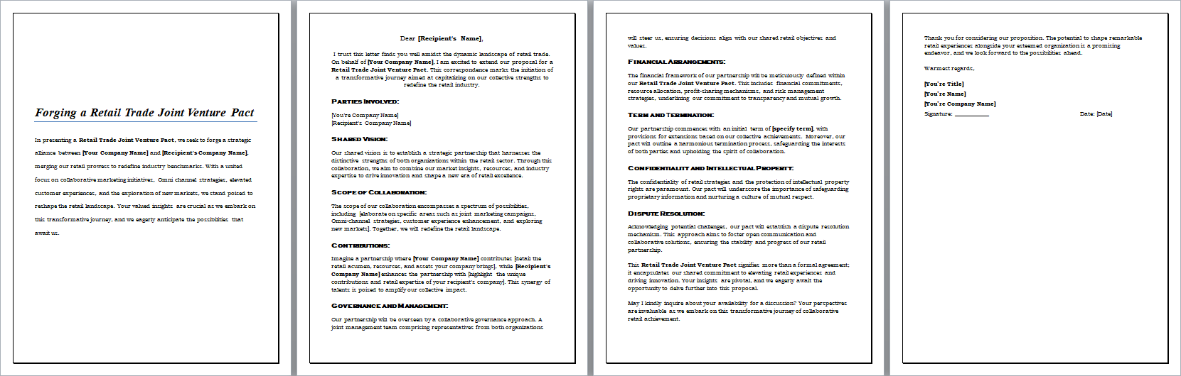 The Retail Trade Joint Venture Pact transforms your retail dreams into reality. Download, customize, and let the retail synergy flow as your brands combine forces to create shopping sensations that capture hearts and wallets.