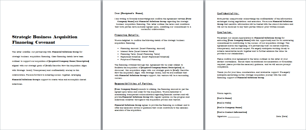 • Access: Dive into the Strategic Business Acquisition Financing Covenant, embarking on a journey of targeted growth and amplified market presence.