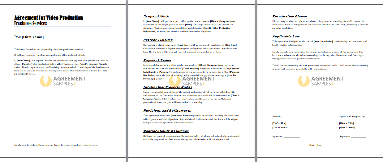 - Rights and Usage: Imagine discussing distribution rights. This section addresses how the video will be used, shared, and who owns the final product.
