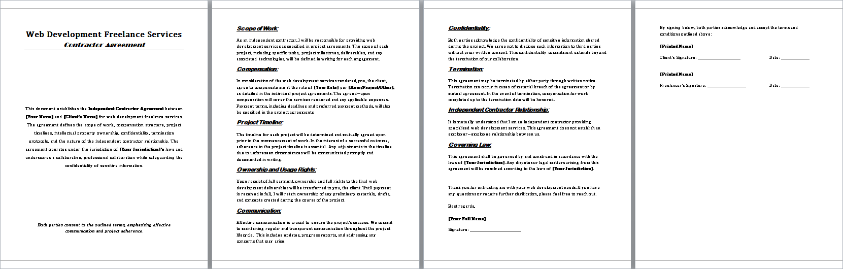- Agreement Participants: Envision the skilled freelance web developer and the client with a digital vision. The agreement defines who's collaborating on this online journey.