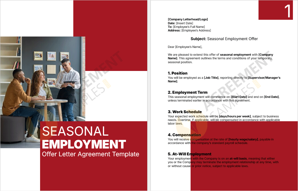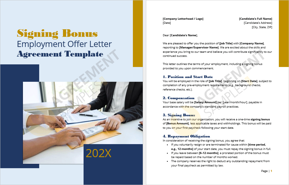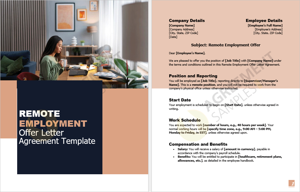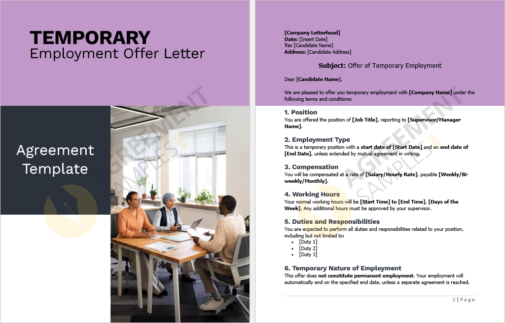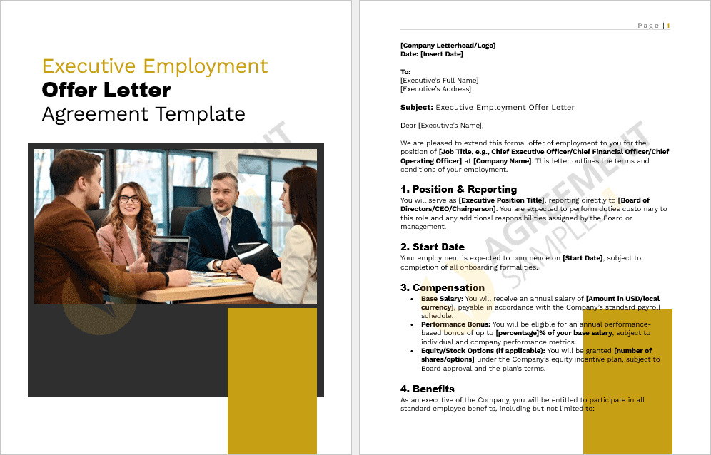 Get started today with our collection of 20+ employment offer letter agreement templates, each designed for different hiring needs. Every template comes with a professionally crafted cover page to give your documents a polished, branded look. Simply download, edit, and share with your new hires in minutes.