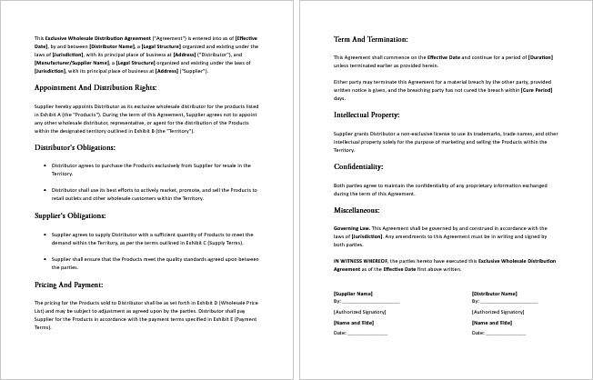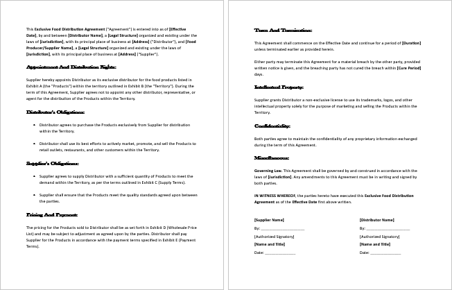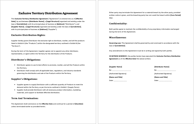 2. Replace Placeholder Text – Fill in your company name, distributor details, territory, and other agreement terms.