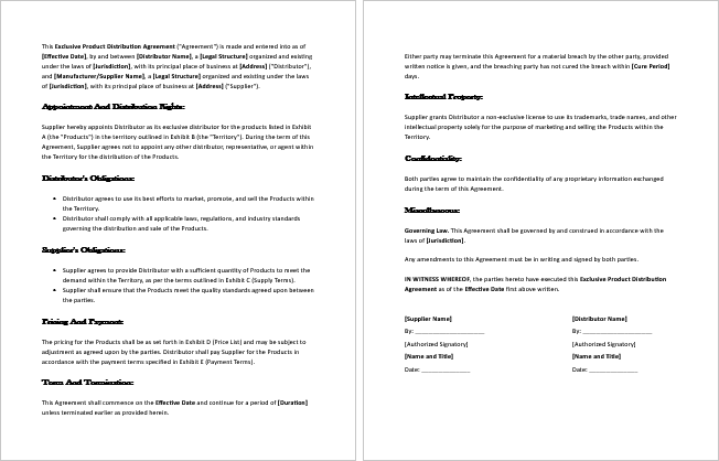 Explore and download free, easy-to-customize exclusive distribution agreement templates in MS Word to secure and grow your business partnerships.