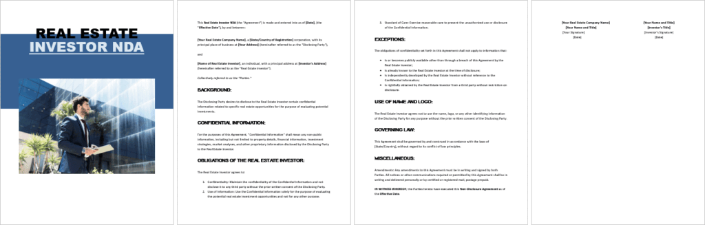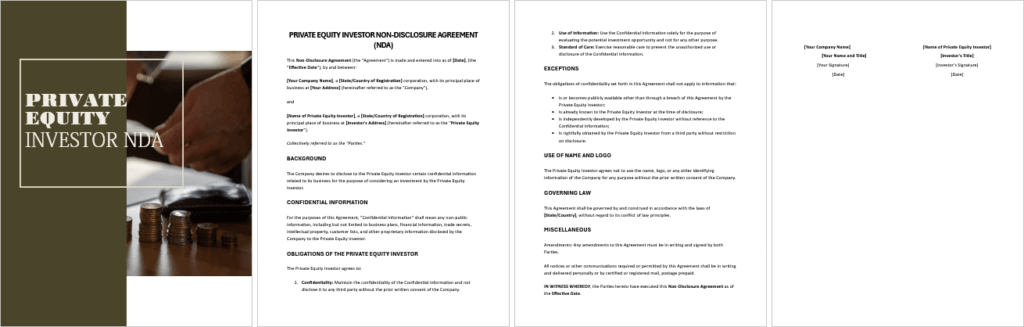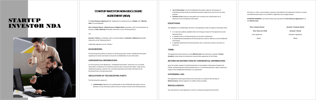 It’s often used during funding talks, pitch meetings, or partnership discussions. By having an investor NDA in place, you can speak openly about your business while feeling confident that your confidential information is protected.